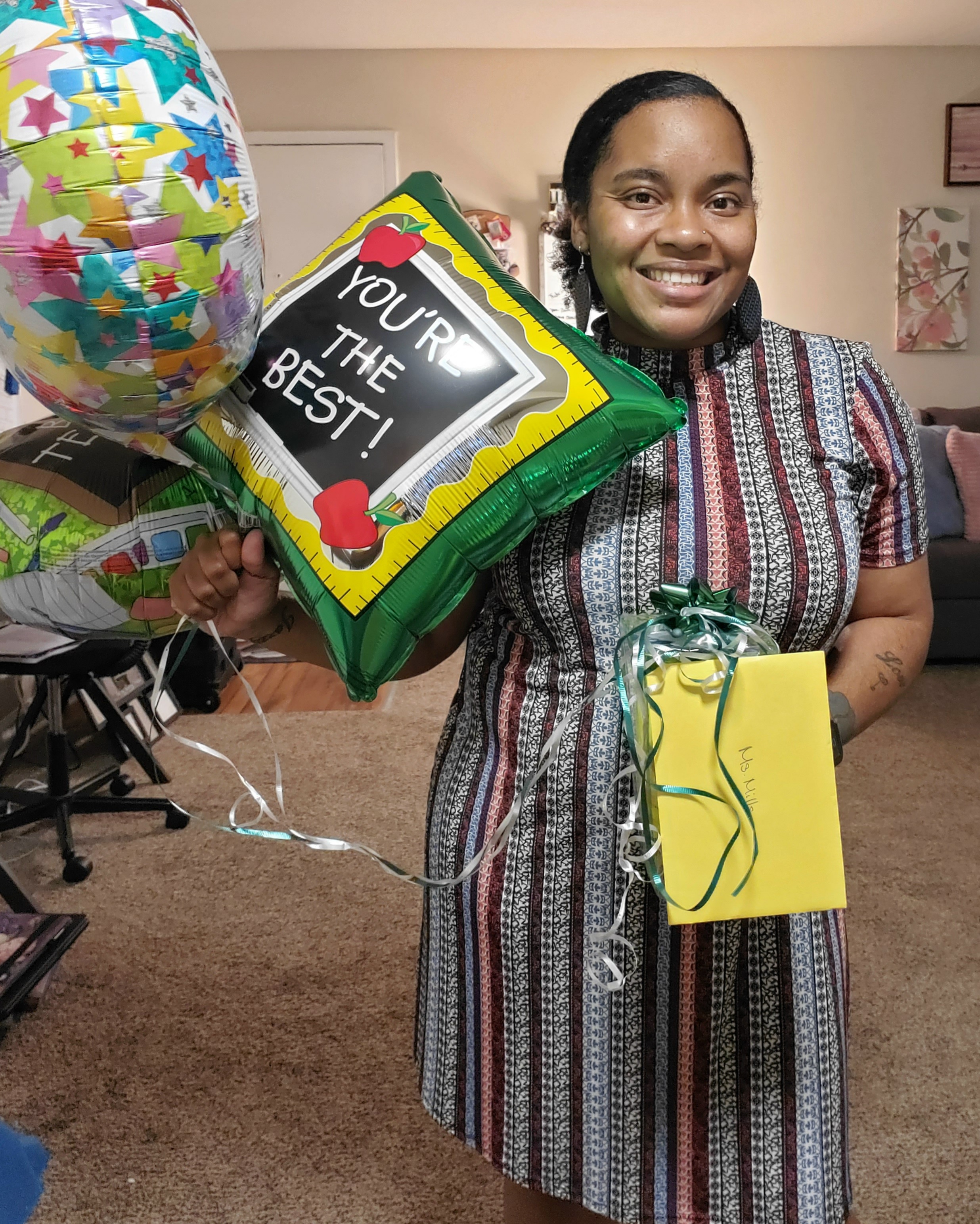 This year was a little different, I felt a little sadness in my heart because I only had two students in my classroom during hybrid learning. All of the rest of my students were online at home learning. But to my surprise, gifts were dropped off to my school building for my teammate and I. This distance learning journey has been tough because I miss my little notes of love, hugs, and high fives. After a long school year thus far I am happy to say this is a week I’ll never forget. I will never forget the sacrifices parents make to show their appreciation for us! I’m truly grateful and blessed to be TEACHER!