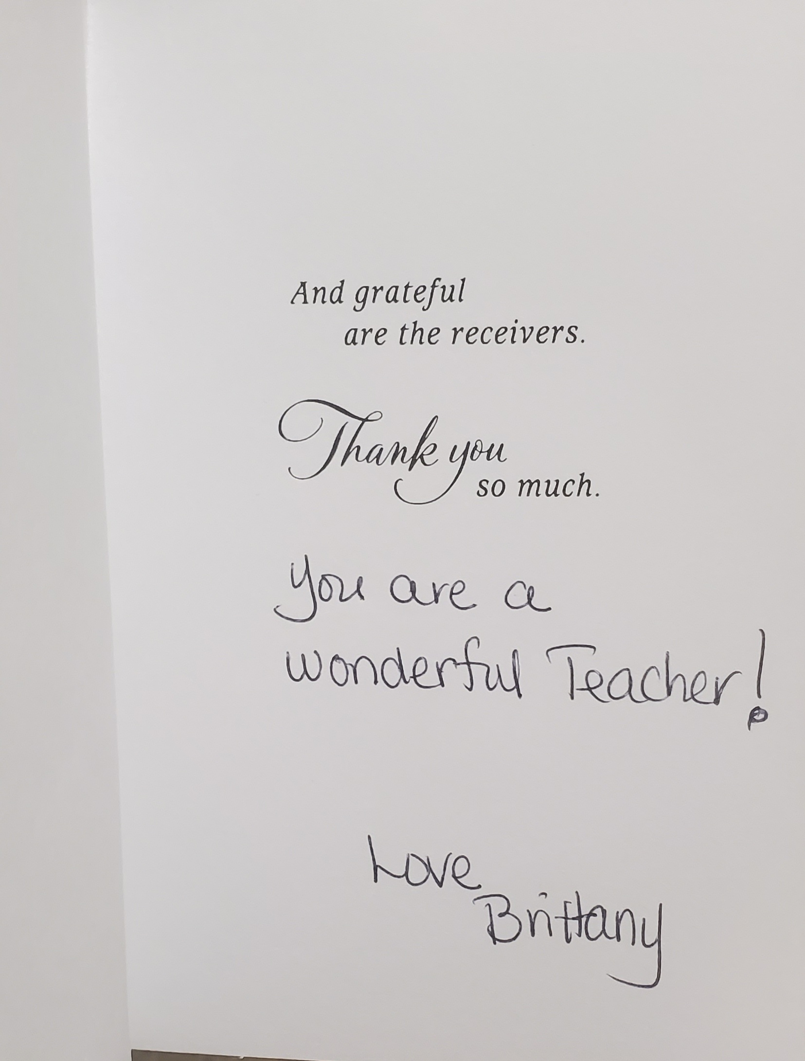 There’s no better feeling than being appreciated as a teacher. We have long, tiring days… Days when we don’t eat during lunch, get a full night’s rest, or even get a chance to do anything on the weekends because we’re so tired from the long week. But every year for teacher appreciation week I am showered with gifts from handmade cards to teacher mugs. It’s not only about the gifts, let me say that again. “IT’S NOT ONLY ABOUT THE GIFTS!” It’s about the THOUGHT that someone, some little person cares about me soooo much that they show their appreciation for me during this special week!